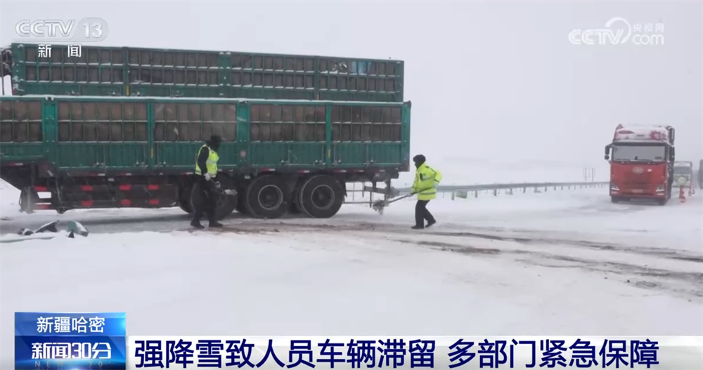 新疆哈密:强降雪致人员车辆滞留 多部门紧急保障
